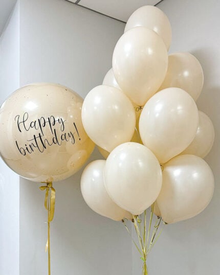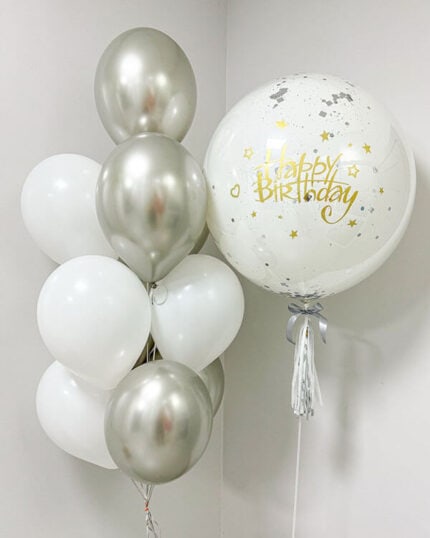 Малый — около 30 см. Применяется для компактных надписей или блесток с тонкими лентами. В данной категории часто используют полностью прозрачный латекс без внешнего слоя.